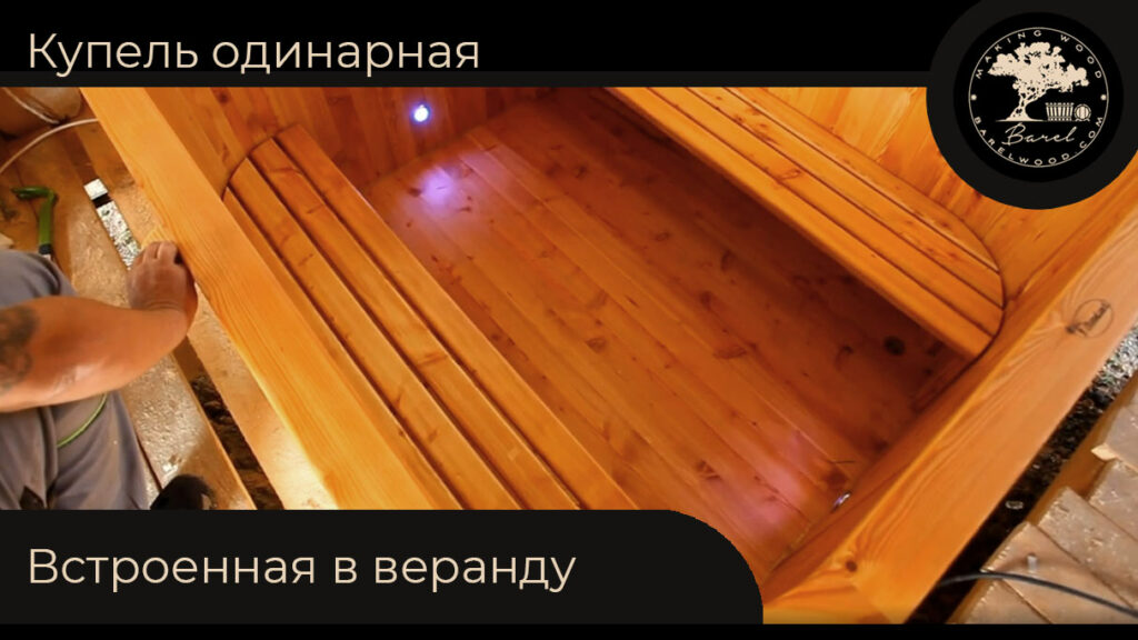 Купель одинарная | Купель встроенная в веранду Купель одинарная с системой хромотерапии и внешней печью. Особенностью данной купели является то, что она конструировалась с учётом что она будет встроена в готовую веранду бани.