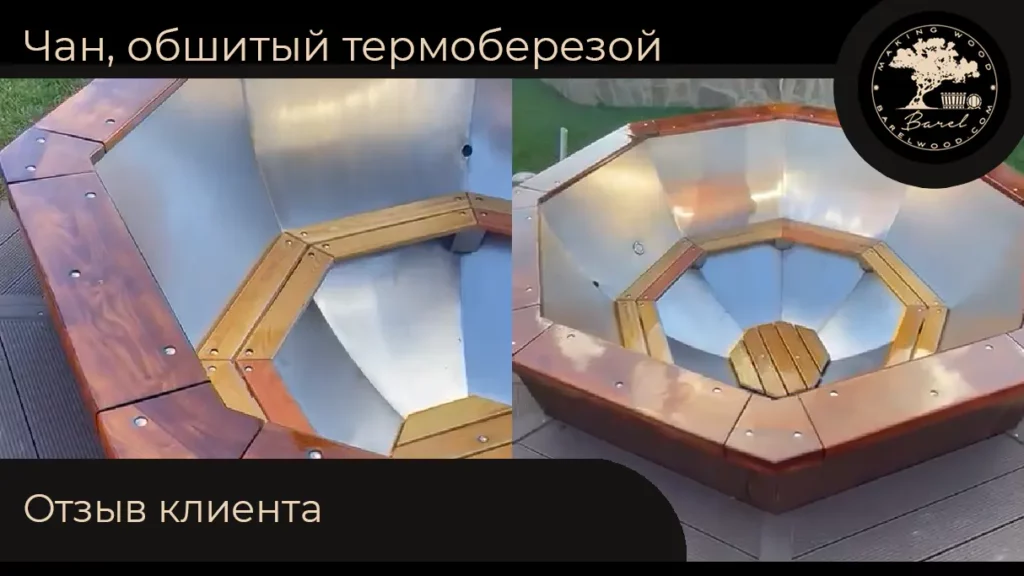 Чан из нержавейки собран и обшит термоберезой. Отзыв клиента. Хотите такой же чан или любую другую купель? Мы производим деревянные купели любых размеров и форм из натуральных редких пород древесины высшего качества для бани, сауны, загородного участка и дома. Оформить заказ на эксклюзивную купель, можно здесь: simferopol.barelwood.com/baptistry/