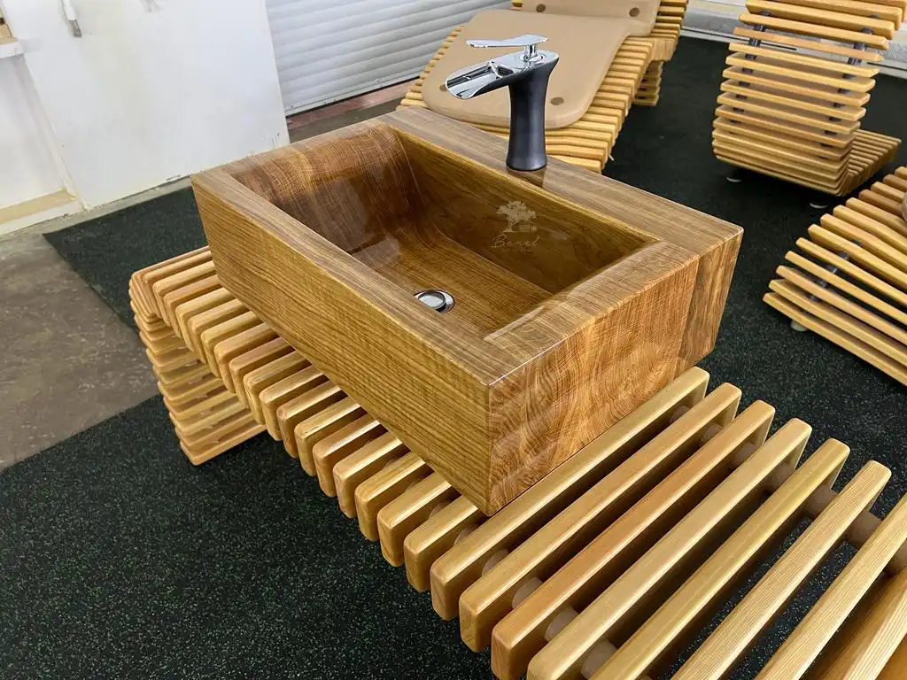 Деревянные раковины — это, пожалуй, лучшее решение для лучших интерьеров! Ощущать всю безупречную естесственную фактурную красоту цельного массива древесины, погружаться душой в неповторимость природы — и все это в процессе обычных гигиенических процедур. Вот, где эмоции, вот где энергетика, вот где здоровье и долговечность, вот где индивидуальность и премиальный дизайн! А наши специалисты, как обычно, позаботились о качестве: идеальная обработка древесины, профессиональная сборка, покрытие льняным маслом и многолетняя гарантия в подарок!