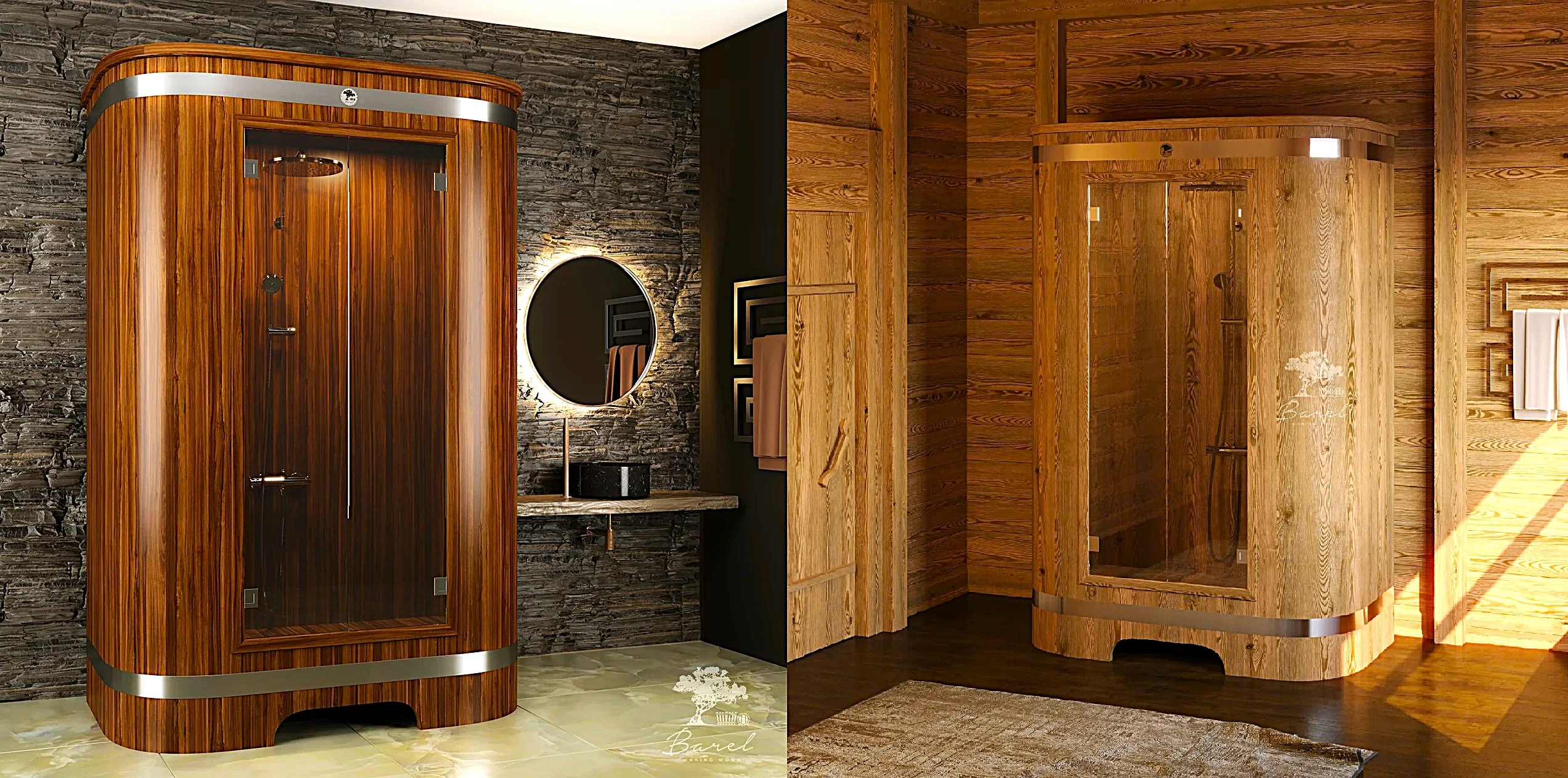 Душ после бани или фитопроцедур просто необходим. А если душевая кабина сделана из лиственницы или термоясеня, то принять душ будет особенно приятно и даже полезно. Лиственница выделяет сильные фитонциды, аромат которых очень долго выделяет его древесина. Древесину пропитывают в дополнение ароматными натуральными маслами, поэтому она приобретает высокую устойчивость к воде любой температуры. И наконец, внешний вид душевой кабины чрезвычайно симпатичен и улучшит интерьер любого спа-салона, любой сауны и вашей ванной комнаты в доме или квартире.