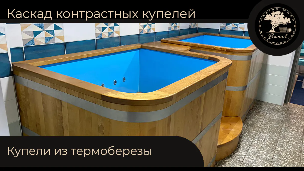 Готово! Каскад контрастных купелей из термоберезы с полипропиленовой вставкой от Barelwood доставлен и установлен!