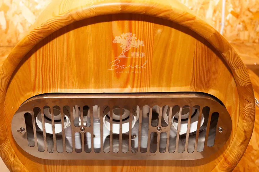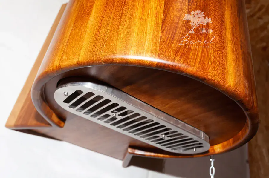 Конструкция обливного ведра Barelwood представляет собой емкость с нижним изливом, жестко закрепленная на кронштейне. Его можно повесить на стену в помещении бани или сауны. В дне обливного ведра размещено сливное отверстие, закрытое автоматическим клапаном. Можно регулировать напор изливающейся воды, нажимая на рычаг с разной силой.