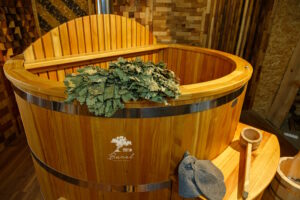 This space is necessary for the location there siphon and natural ventilation. The minimum required height of the baptistry is 1 meter. This height is sufficient for both hot and cold baptistry. However, this is an individual feeling. We offer in our sample room to «try on» the size of the baptistry on yourself and accurately for yourself to determine the parameters. When buying a baptistry, it is worth paying attention to the ceiling height of your room.