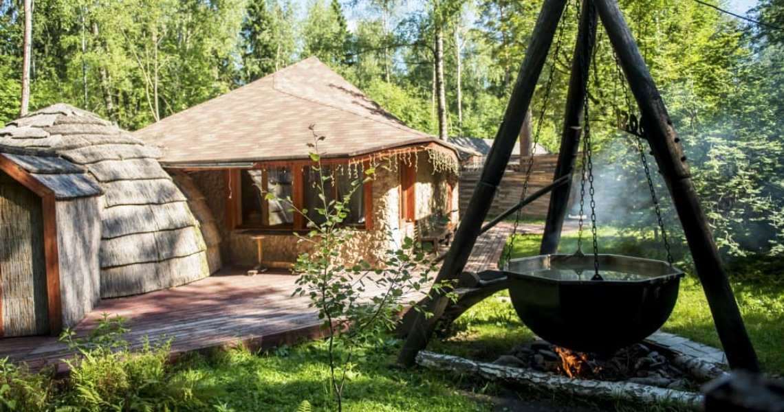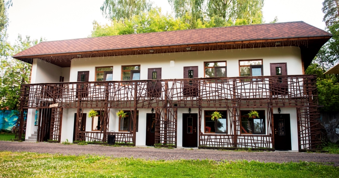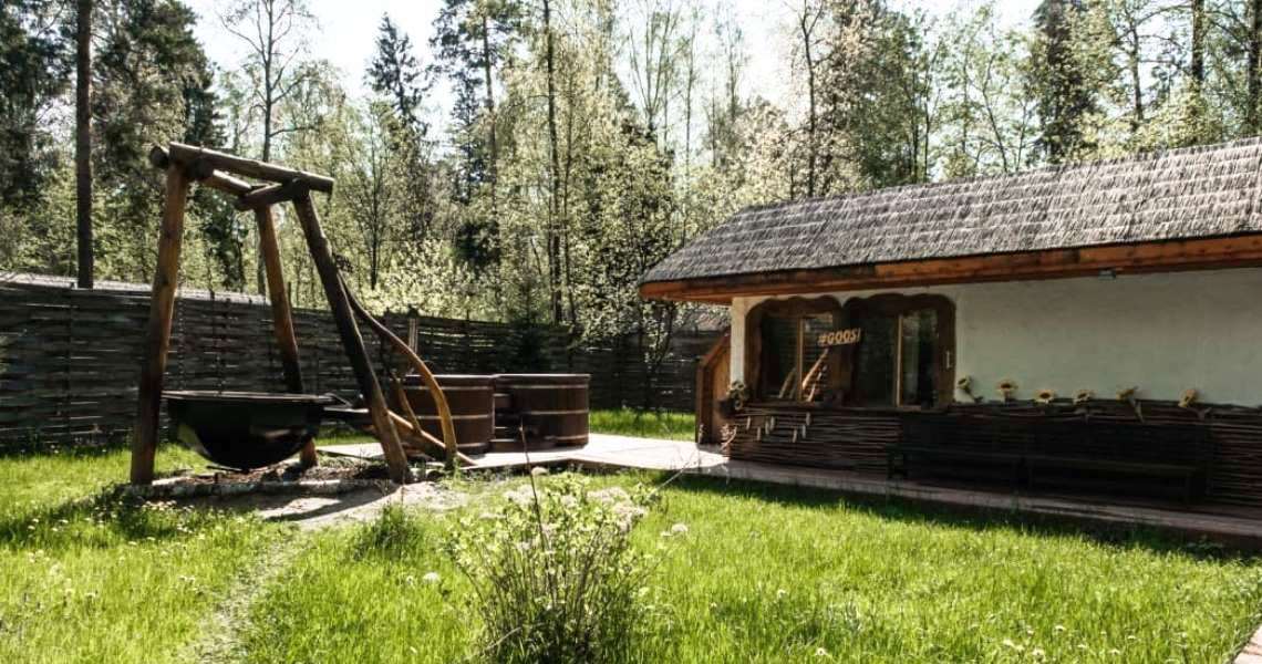 Банный курорт «Гуси-Лебеди — это комплекс соломенных бань на берегу озера, уникальные глиняные шатровые парилки с кондициями русской печи, лесная территория на берегу запруженной реки в центре города».