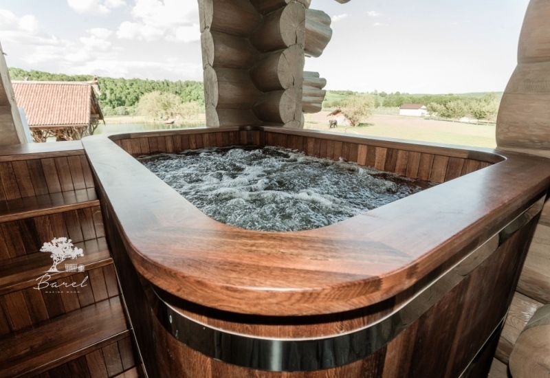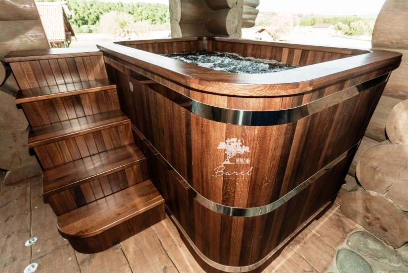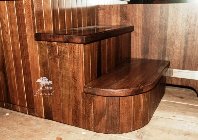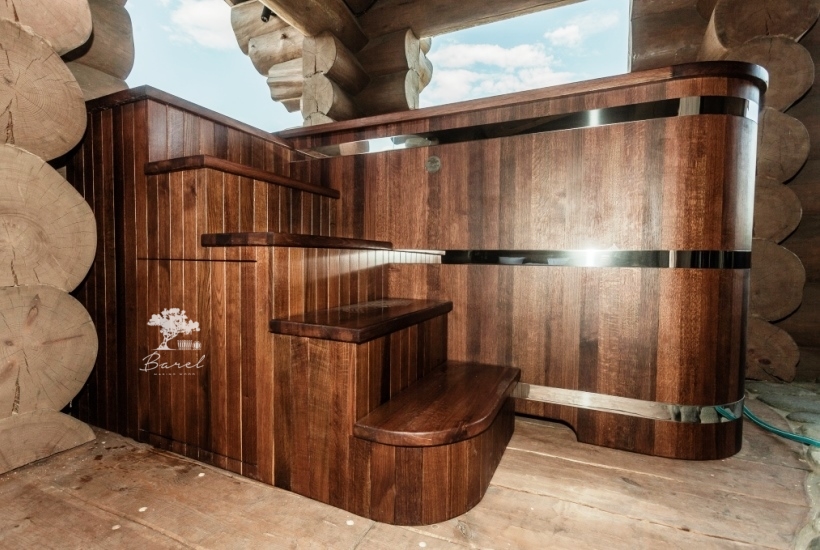 Эксклюзивная деревянная трехслойная прямоугольная купель Barelwood для интерьера бани, сауны или загородного дома. Купель изготавливается по уникальной авторской технологии Barelwood, благодаря которой срок службы составляет более 15 лет. В конструкции купели используются обручи из высокопрочной нержавеющей пищевой стали, обеспечивающие надежное крепление. Система натяжения позволяет своевременно подтягивать или расслаблять обручи. Все деревянные элементы купели стыкуются паз в паз по принципу «елочки», что исключает малейшую возможность протечки и добавляет безупречную герметичность. В производстве купели используются только лучшие экологичные сорта древесины высшего качества, обладающие полезными свойствами для здоровья и укрепляющие иммунитет. Древесина покрывается экологически чистым трехкомпонентным льняным маслом. По желанию, купель комплектуется широким ассортиментом дополнительного высокотехнологичного оборудования. Эксклюзивная деревянная трехслойная прямоугольная купель Barelwood — лучшее экологичное решение и главный элемент банных процедур.