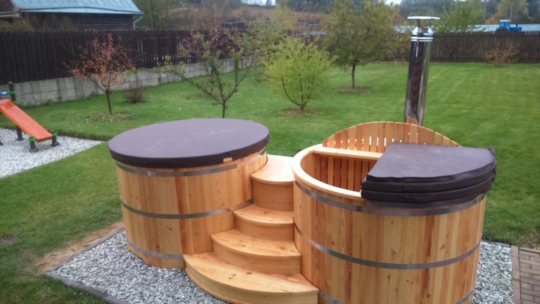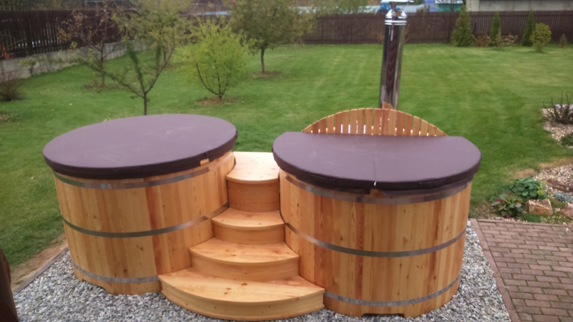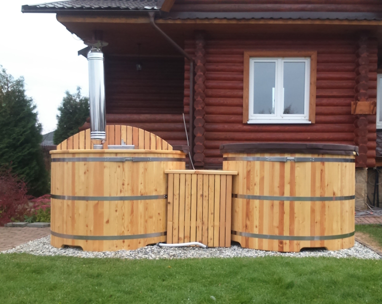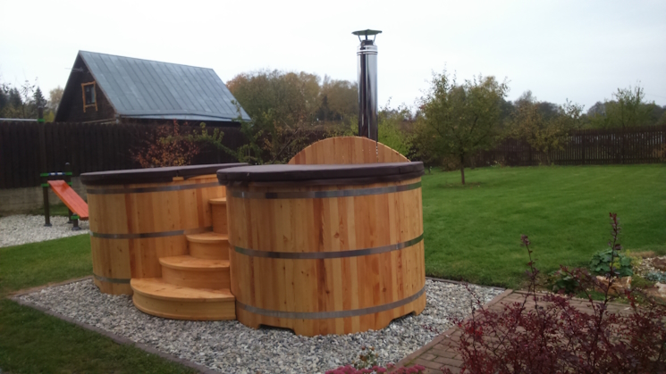 Каскад круглых деревянных уличных купелей Barelwood из массива высококачественной древесины с внутренней печью, идеально подойдет для размещения на территории загородного участка, бани и др. Купели можно использовать раздельно как теплая (с подогревом) и холодная. Купели изготавливаются по уникальной технологии Barelwood, благодаря которой срок службы составляет более 15 лет. В конструкции купелей используются обручи из высокопрочной нержавеющей стали, обеспечивающие надежное крепление. Система натяжения позволяет своевременно подтягивать или расслаблять обручи. Все деревянные элементы купелей стыкуются паз в паз по принципу «елочки», что добавляет безупречную герметичность. Каскад круглых уличных деревянных купелей Barelwood послужит незаменимым главным элементом банных процедур.