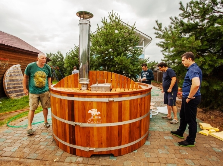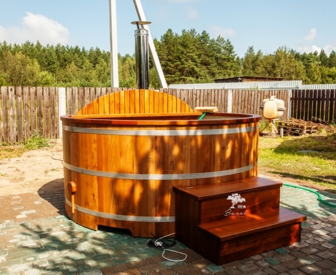 Деревянная уличная круглая купель Barelwood с пластиковой вставкой (полипропилен) и внутренней печью. Идеально подойдет для размещения на территории загородного участка, бани и др. Купель изготавливается из натуральных редких пород древесины высшего качества с приятными красивыми оттенками и ярко выраженной фактурой дерева. В купели применяется уникальная авторская технология сборки Barelwood. Древесина обрабатывается экологически чистым трехкомпонентным льняным маслом. По желанию, купель комплектуется дополнительным оборудованием. Срок службы деревянной круглой уличной купели Barelwood более 15 лет. Лучшее решение для вашего дома! Экологично, надежно. Древесина, из которой изготавливается купель, обладает полезными свойствами для здоровья. По желанию, купель комплектуется дополнительным оборудованием.