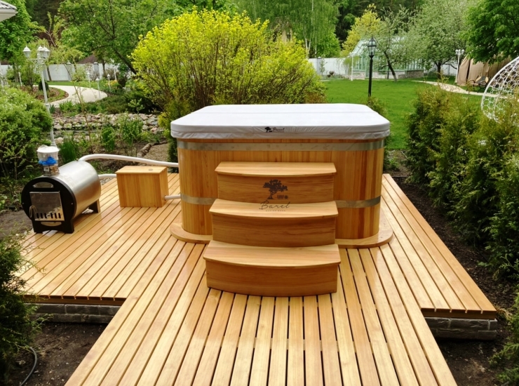 Прямоугольная деревянная уличная купель Barelwood. Идеально подойдет для размещения на территории загородного участка, бани и др. При производстве купели используются лучшие сорта древесины с приятными натуральными оттенками и ярко выраженной фактурой дерева. Древесина покрывается экологически чистым трехкомпонентным льняным маслом. Долговечность и надежность купели обусловлена уникальной технологией сборки Barelwood, все деревянные элементы изделия стыкуются паз в паз по принципу «елочки», что исключает малейшую возможность протечки. При желании возможна установка широкого ассортимента дополнительного оборудования.