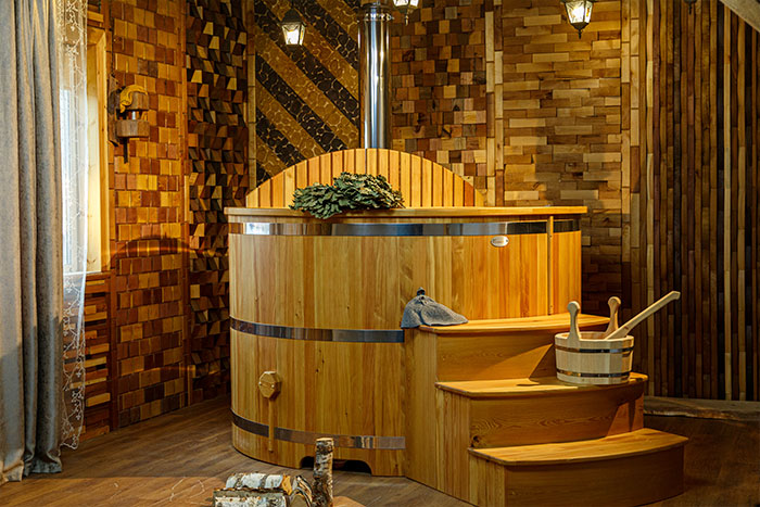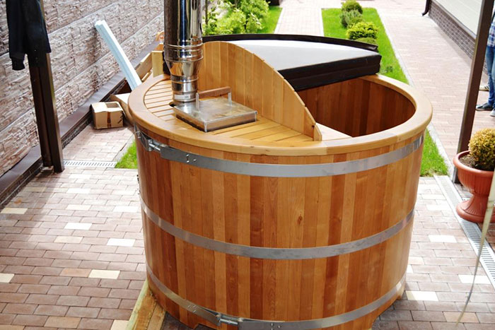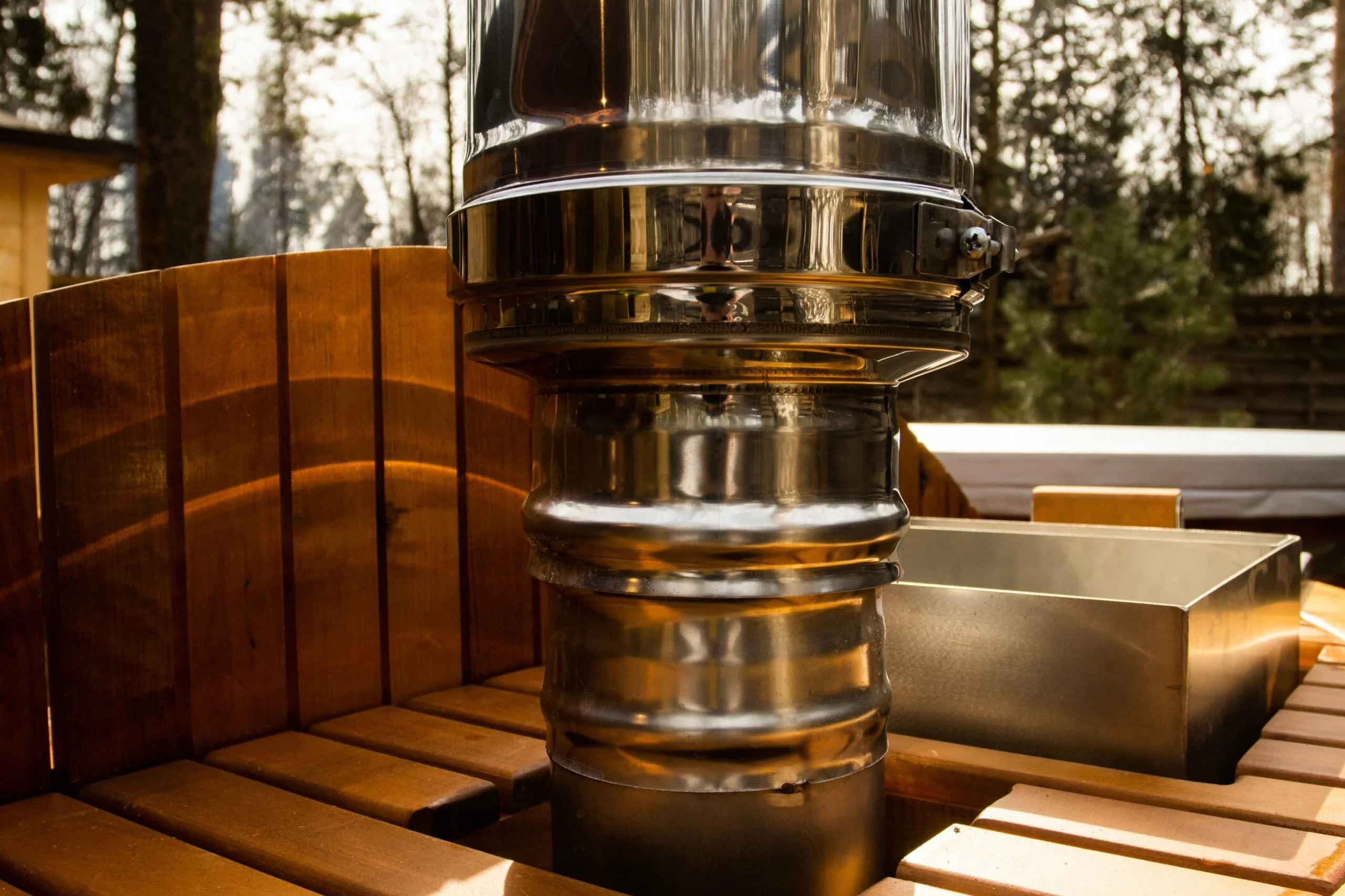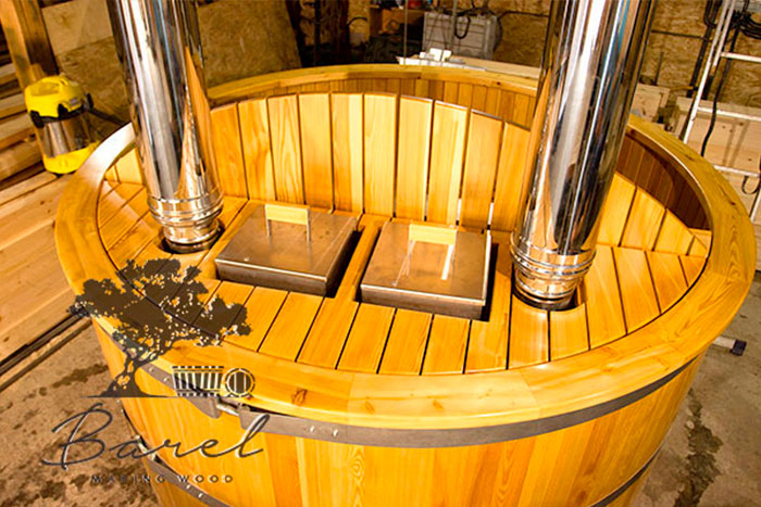 Внутренняя дровяная печь представляет собой металлическую конструкцию из нержавеющей стали, которая устанавливается внутри купели или бассейна. Внутренняя печь ограждается забором, который отделяет ее от основного купального места и предотвращает соприкосновение человека с горячими элементами. Печь оснащена деревянной ручкой для безопасности и удобства, имеет усиленные крепления, стопорное кольцо под трубу-сэндвич, пластины теплоотводов для повышения КПД, трубы внутри для усиления циркуляции потока жидкости. Срок службы внутренней дровяной печи более 12 лет.